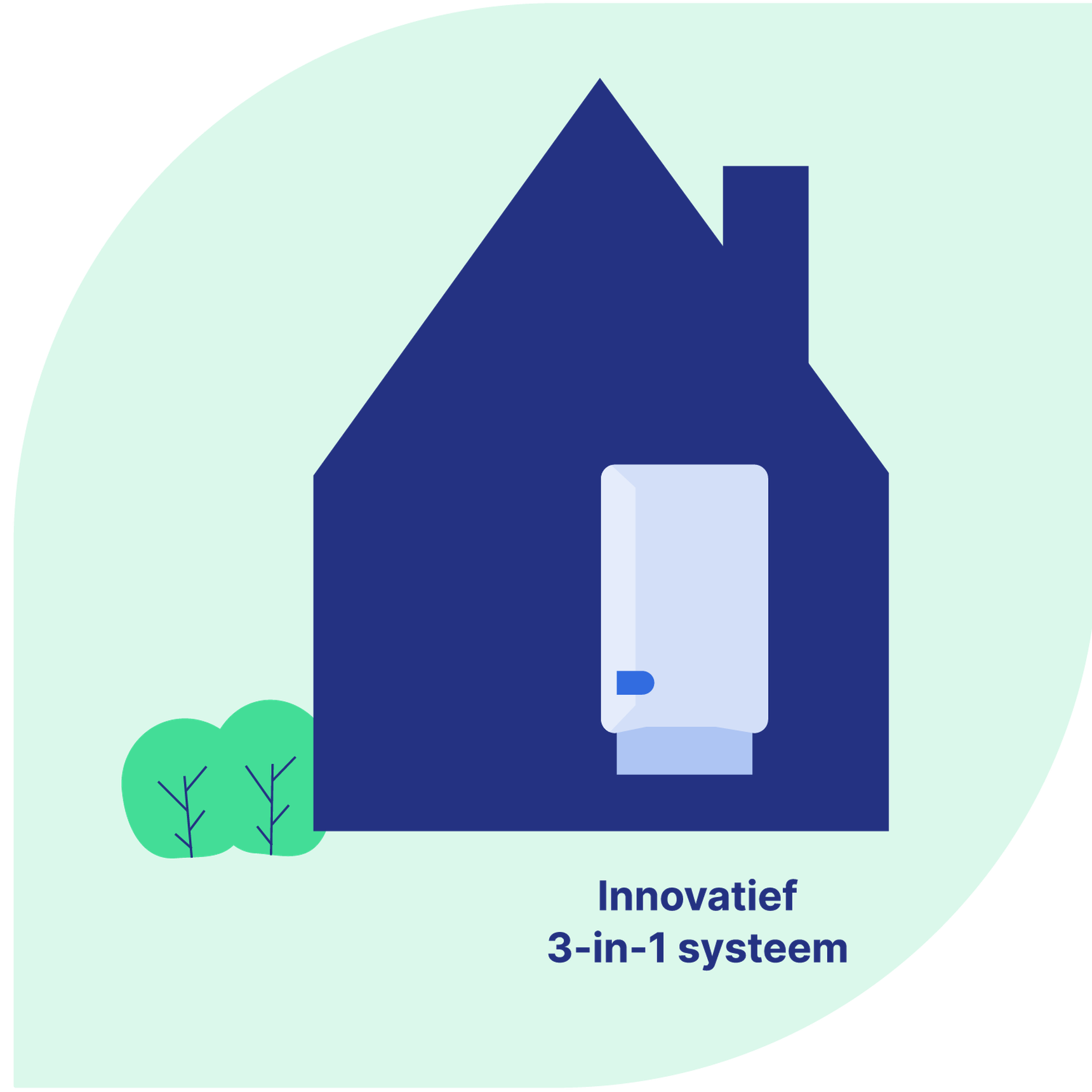Heb je beperkte ruimte binnen? Dit systeem combineert de binnenunit van de warmtepomp en je cv-ketel in één compact toestel.